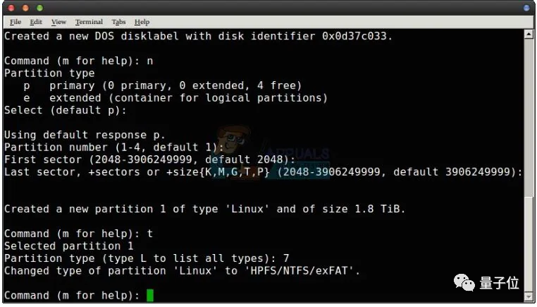 3、按照屏幕上的说明,从显示的消息“HPFS/NTFS/exFAT”中选择“exFAT”