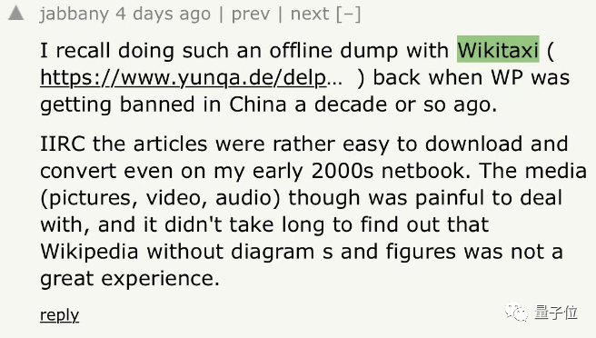 不过离线查阅维基百科在十多年前就已经出现了,有网友提到了Wikitaxi,但它并不会显示图片、视频和音频。