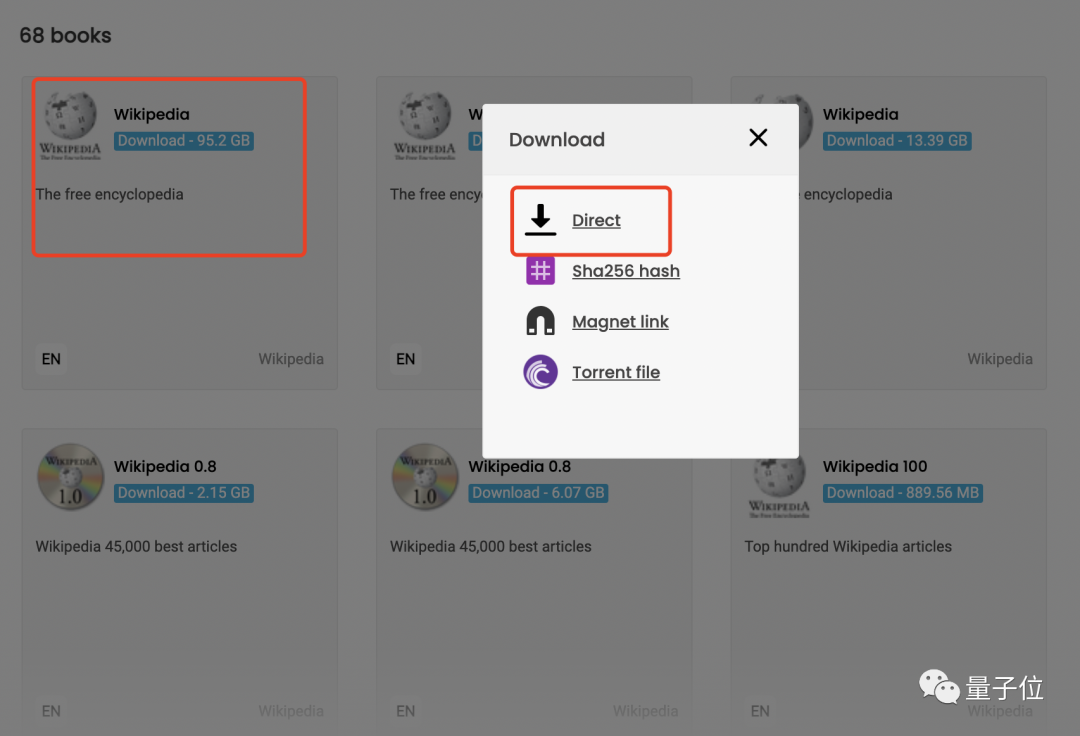 如果觉得整个维基百科文件太大,可以根据自己的兴趣选择相应的文件下载。