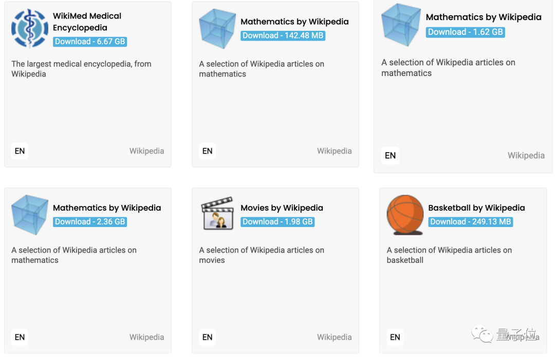 值得一提的是,在Kiwix给出的资料库中,除了整个维基百科库之外,还有按照单独分类好的维基百科资料,比如医疗、数学、电影等等。