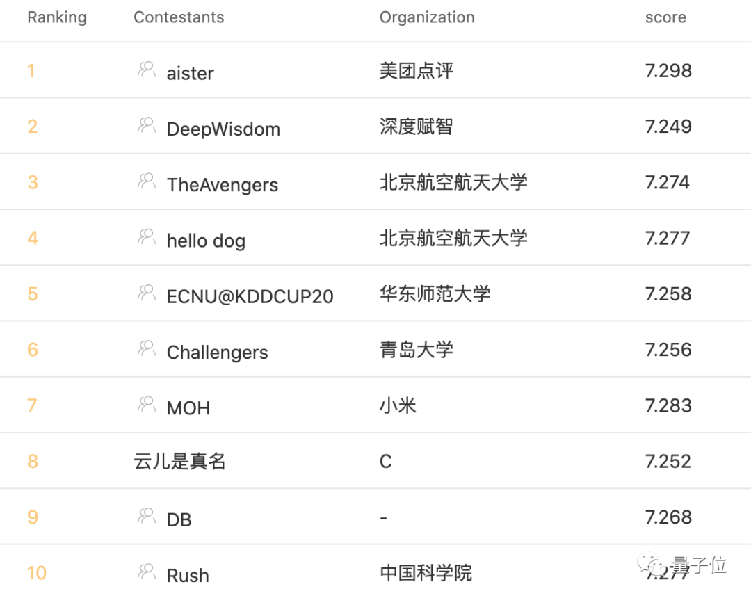 最终冠军由来自美团点评、中国科学院大学和清华大学(aister)的团队获得,亚军为南京大学(PASA_NJU)的团队,至于季军团队,则来自蚂蚁金服(qqerret)。