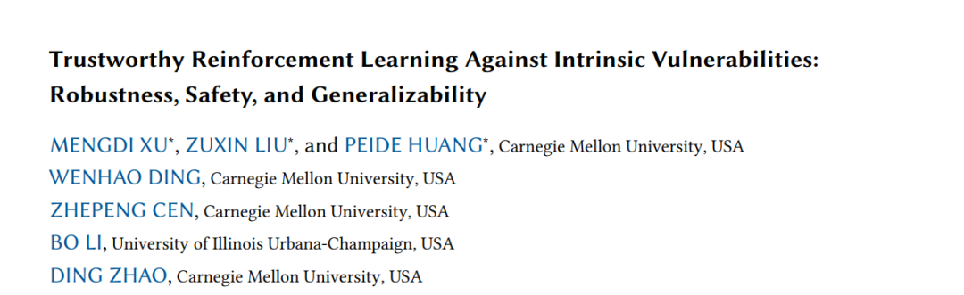 CMU最新《可信赖强化学习》综述为可信的RL的鲁棒性、安全性和泛化性提供一个统一的框架。