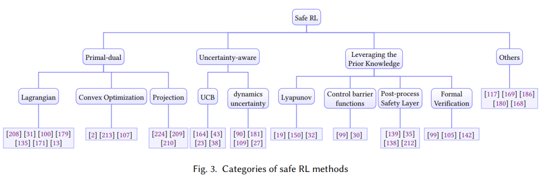 在将它们部署到现实世界的安全关键应用程序(如自动驾驶汽车)时,安全性也是另一个主要问题。传统的强化学习只关注从环境中获得的任务奖励最大化,缺乏满足安全约束的保证。安全的策略应该明确考虑训练期间的安全约束,并防止强化学习智能体造成破坏性成本或处于危险状态。例如,如果将RL算法部署在真实的机器人手臂上,安全约束将是避免碰撞脆弱的物体和周围的人,这可能会破坏宝贵的财产或造成伤害。类似地,自动驾驶应用中的RL智能体应该遵守交通规则,并避免与周围障碍物的碰撞。因此,为现实世界的应用开发安全的强化学习算法是很重要的,这些算法允许它们在满足一定的安全约束的情况下完成任务。安全强化学习又称约束强化学习,其目的是在满足安全约束条件的情况下,学习最大化预期任务奖励的策略。根据安全要求和训练要求,safe RL有不同的配方。在安全要求方面,有轨迹方面的安全约束和状态方面的安全约束。从训练需求的角度,我们可以将安全的RL分为两类:安全部署和安全探索,安全部署的目的是在模型训练结束后安全行动,但在训练过程中可能会违反约束;安全部署是指在训练过程中提供安全保障,使整个训练过程能够完成,而不会造成灾难性的不安全行为。注意在RL设置中,智能体需要从故障中学习,在安全RL设置中类似。有人可能会说,我们应该始终使用领域知识而不是主动学习来避免任何安全关键故障。然而,在这项调查中,我们发现在许多情况下,对环境风险的精确描述是不可用的。这也是我们既要注意安全部署,又要注意安全探索,管理风险的原因。