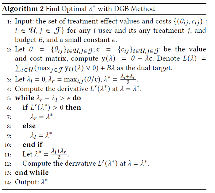 为此,该研究设计了可并行的 Dual Gradient Bisection(DGB)算法,如图 4。该算法在不损失解质量的情况下,实现了亿级用户量的分钟级求解。限于篇幅,这里简单描述下求解思路,详细的可以参阅论文和附录 code。