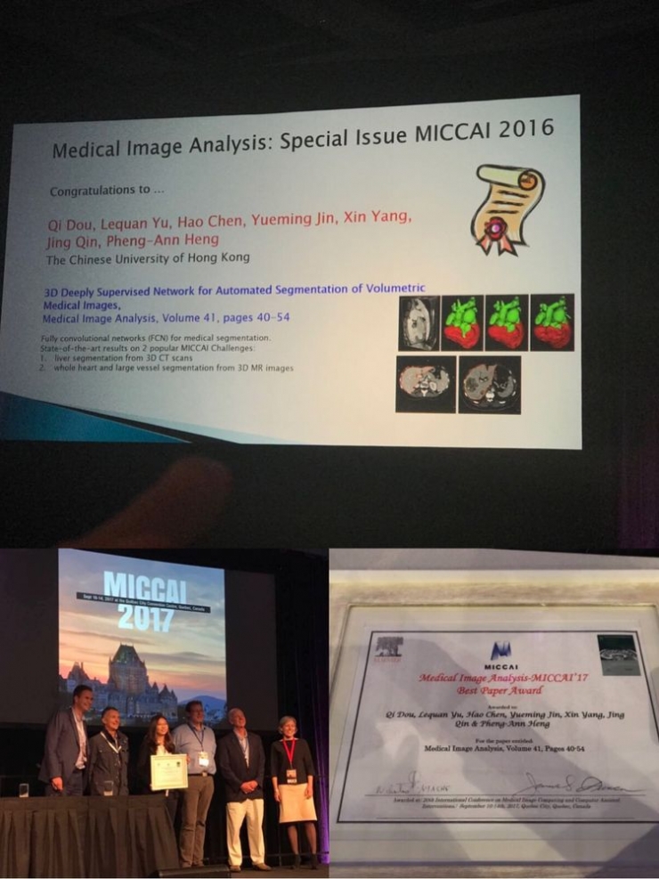 香港中文大学窦琪、于乐全、陈浩等人的文章获 medical image analysis: miccai2016 special issue 最佳文章奖。