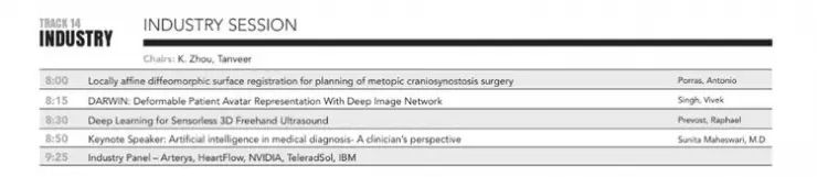 MICCAI Oral Session 14 是专门针对工业界设计的,共有四个演讲,头三个是大会的常规论文,最后一个是特邀演讲,演讲之后还有个 panel 讨论。Tanveer(IBM) 和我共同主持。