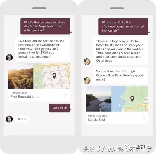 从官网信息可以了解到Hello Scout通过短信沟通,能提供十分私人化的一对一目的地信息问询服务。例如“8人一起,明天下午去往Napa,怎么去“,Scout会告知你合适的车辆服务公司,以及8人所需花费的价格,直接将乘车地点的地图发送到对话界面来。”下午我想骑车出去兜兜,有什么好去处“,这时Scout会先确认天气情况是否适合骑行,然后再推荐适合骑车的路线,附上地图,还随带提供一些在过程中可能会想要的其他体验。
