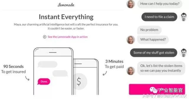 Lemonade成立于2015年,美国纽约一家P2P保险公司,用人工智能技术替代代理人,所有环节线上操作,没有保险经纪人,以简单便捷、低成本为价值诉求。目前开展业务仅限于为房主或房东提供财险产品。简单便捷来自于精心设计的交互界面,其中包括名为Maya的聊天机器人,来进一步提升客户体验;而低成本则归因于没有保险经纪人,无需支付销售佣金。2016年12进行了B轮融资,3400万美元,至今融资总额6000万美元,背后有包括红杉在内的著名投资机构。此前,A轮获1300万融资,在2017年4月又获得一笔融资,金额未透露。