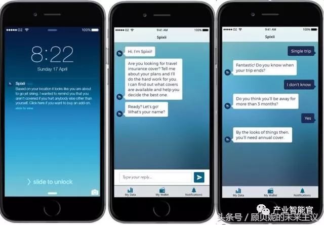 Spixii成立于2016年,为英国伦敦的一家非常年轻的创业公司,成立之初在Startupbootcamp创业加速器获得创业奖金。Spixii计划通过聊天机器人成为自动化的保险代理,保险产品的销售渠道。目前Spixii仍在测试阶段,号称可支持5种语言。德国有家类似的创业公司Insurgram主打通过聊天机器人购买保险的公司(Insurance by Chat),它已与Geico车险公司达成合作。