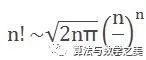 当n趋于无穷大的时候,n!满足下面的近似关系式——斯特林公式:
