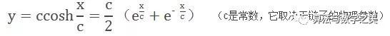 三人的方法都不一样,但最终的结果却是一致的。而雅各布自己则并没能把它解出来,这让弟弟约翰•伯努利异常兴奋。悬链线的正确方程是这样的: