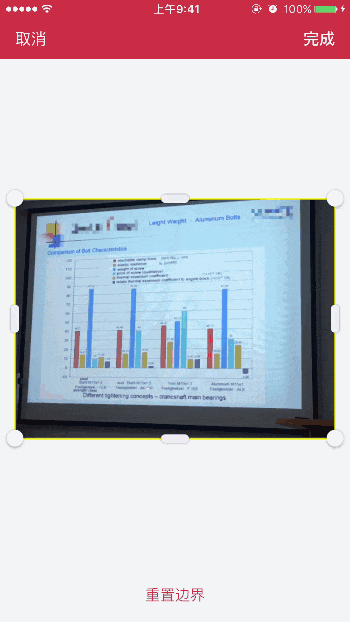 从下图可以看到,虽然 Scanbot 纯自动选择边缘效果不理想,但是手动调整选择框时仍会自动找到最佳边缘,效果喜人。