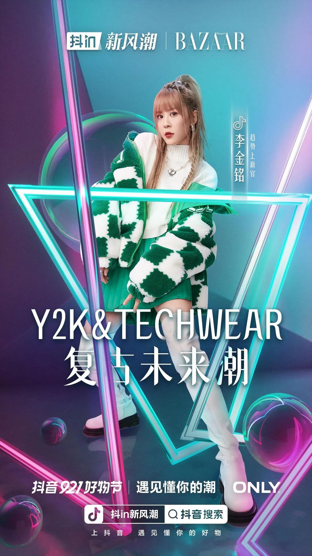这次盛典上,抖音电商还特别为五大趋势邀约了对应的“趋势上新官”,包括无性别风潮 @草莓青,运动闲适潮 @赵奕欢,优雅极简潮 @梦颖Melinda、@大洪洪,顶流华风潮 @宣璐,复古未来潮 @李金铭,此外明星 @毛林林也友情助阵——每一位都是坐拥海量抖音粉丝、和抖音电商服饰行业有着深入合作的。借助每位上新官独特的风格,结合Lola Rose、Ubras、内外、回力、安踏、李宁、ONLY等符合不同趋势的品牌单品、look,趋势亮点也被很直观地演绎了出来。