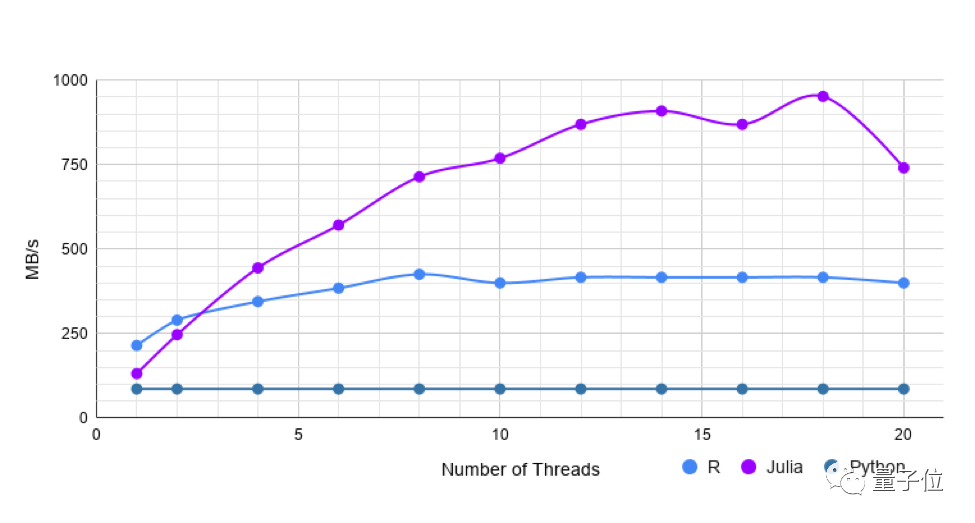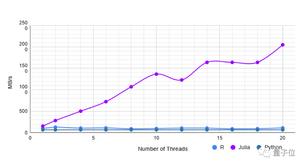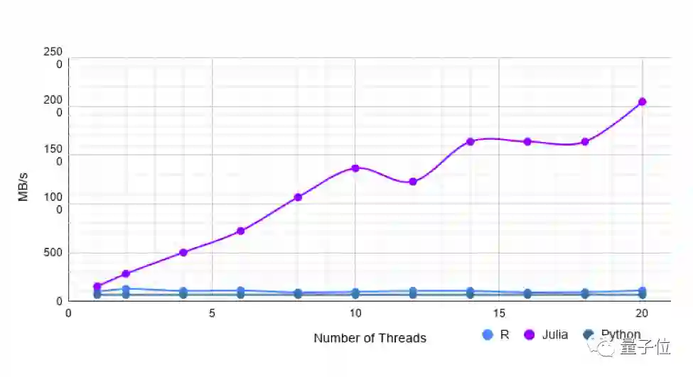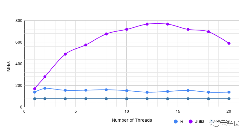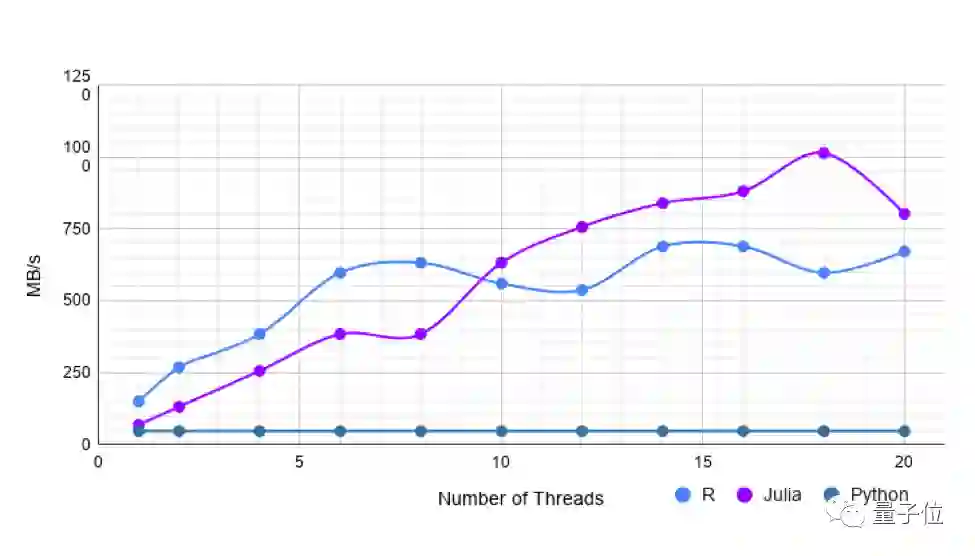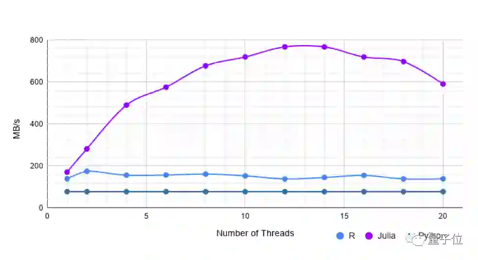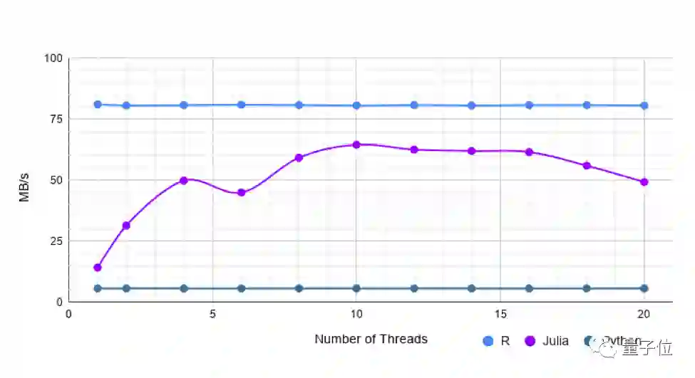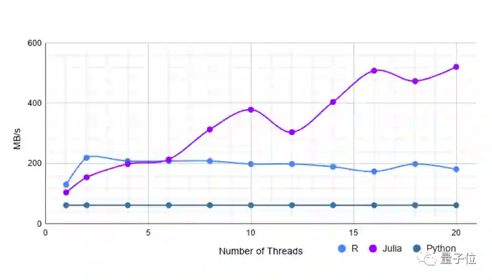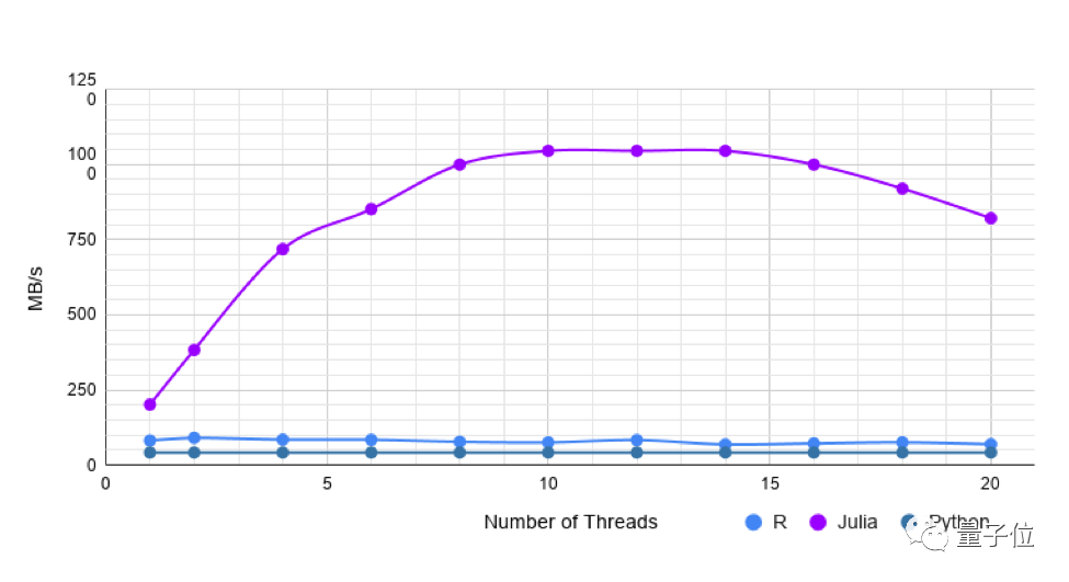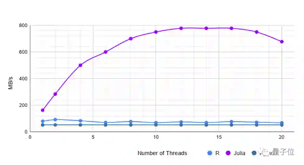 但是,使用更多线程,Julia的速度与R一样快或稍快。