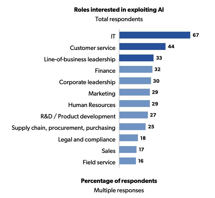 AI在各部门的运用百分比