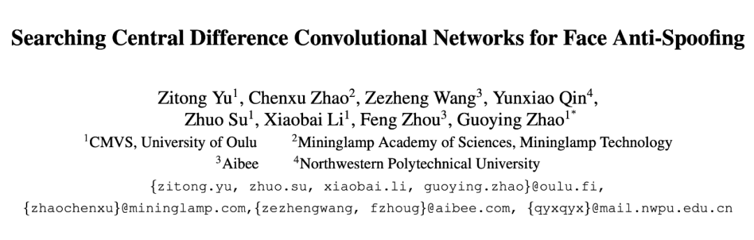 论文标题:Searching Central Difference Convolutional Networks for Face Anti-Spoofifing