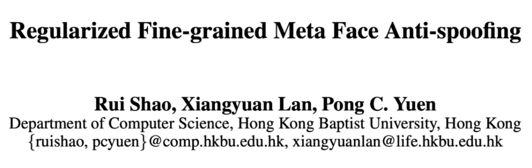 论文标题:Regularized Fine-grained Meta Face Anti-spoofing