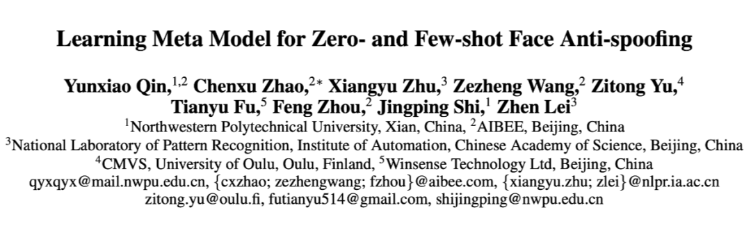 论文标题:Learning Meta Model for Zero-Shot and Few-shot Face Anti-spoofing