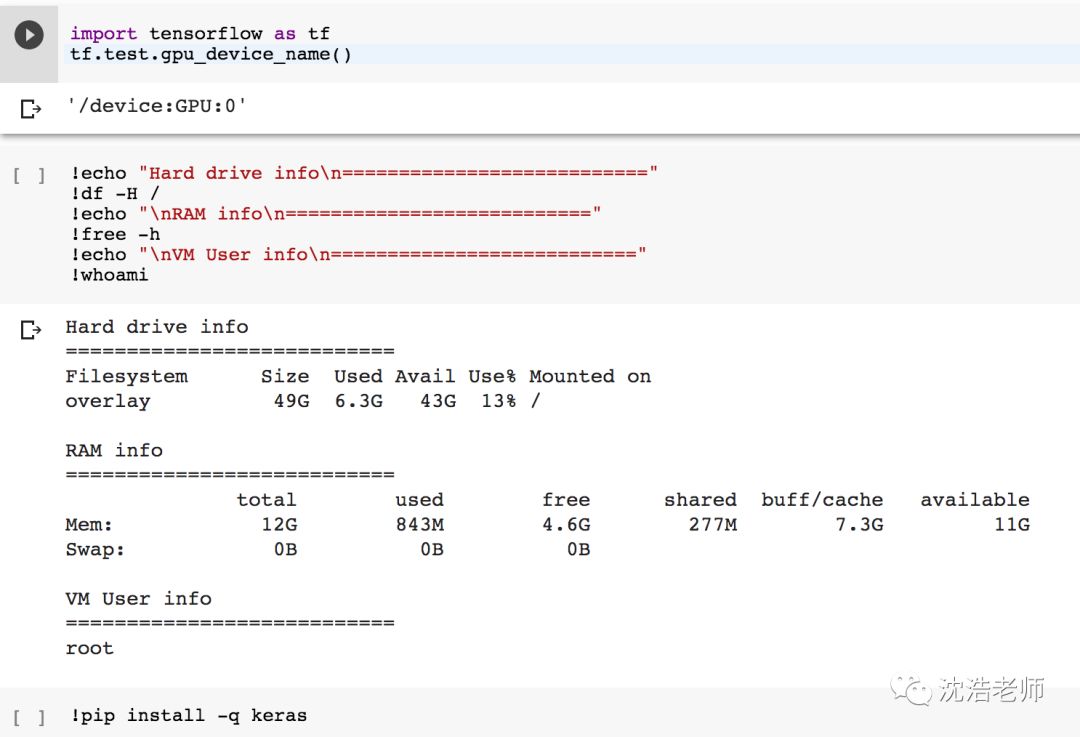 接下来就可以安装深度学习各种框架包了,只要在安装命令行前加上!即可。