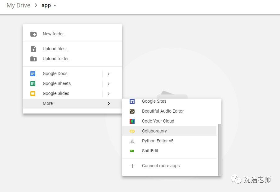 接下来:Create a new notebook via Right click > More > Colaboratory