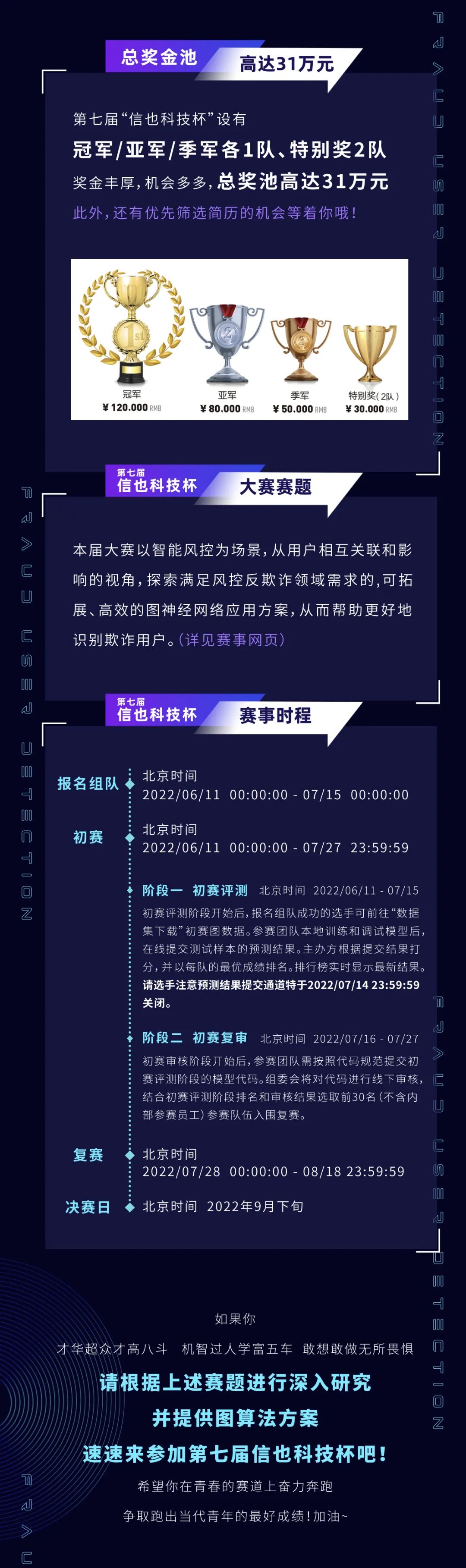 前方高能!总奖金池高达31万元,第七届信也科技杯图算法大赛开始报名啦!