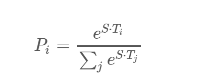 Pi=eV⋅Ci∑4jeS⋅CjPi=eV⋅Ci∑j4eS⋅Cj