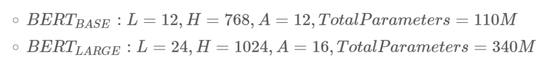 在这项工作中,我们表示层的数量(即,Transformer 块)为 LL,隐藏尺寸为 HH,自注意头的个数为 AA。在所有例子中,我们将前馈/过滤器的大小设置为 4H4H,即当 H=768H=768 时是 30723072;当 H=1024H=1024 是 40964096。我们主要分析两个模型大小的结果: