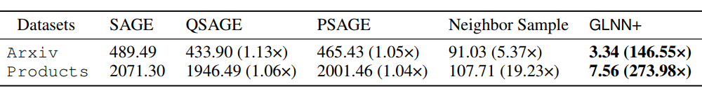 ▲ 表4:GLNN和其基线在归纳设置(inductive setting)下的推理时间(inference time)
