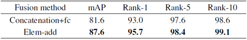 表3:不同信息交互方式对比:"concatenation+fc" vs. "element-wise add"