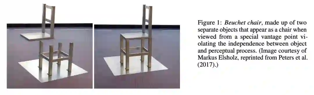 我们在感知物体时,大脑会假设该物体和其光线所包含信息抵达大脑的机制是相互独立的。我们可以从特定视角观看该物体,来破坏这一假设。如果我们这么做了,则感知会出错:在 Beuchet Chair 的例子中,我们感知到椅子的三维结构,而现实中并没有这样一把椅子。