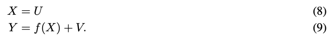 回到因果关系,我们为 SCM 中函数假设对基于数据学习因果关系的必然性做出了直观解释。考虑一个仅具备两个观测对象的 SCM X → Y,则 (1) 变成: