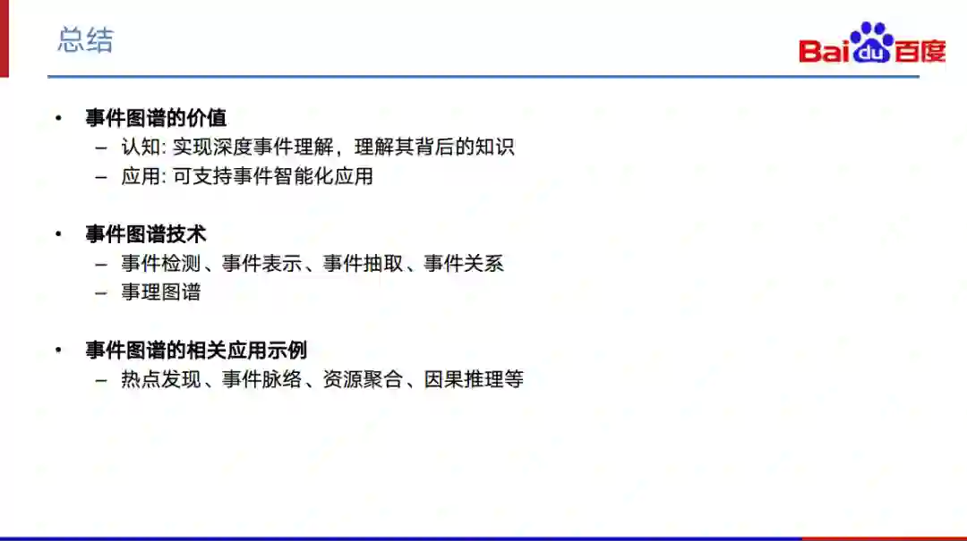 上面我已经讲了事件图谱的检测、表示、抽取以及因果关系,下面我将介绍事件图谱在百度以及行业中的具体应用: