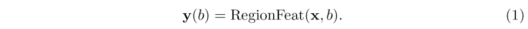 一般地,y(b)的维度为K×C_f,通道数保持和图像特征x一样为C_f,而K表示区域中空间子区域(spatial part)的个数。上述概念可以被泛化。一个子区域(part)未必有规则的形状,子区域的特征y_k (b)无需从图像特征x上固定的空间位置得来。甚至,子区域的并集未必是关注区域本身。在一般化的表达式中,子区域的特征被视为图像特征x在采样区域Ω_b(support region)上的加权和,如