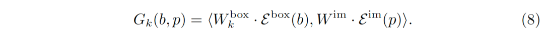 公式(8)本质上是一个注意力模型,注意力模型是建模远距离的或者性质各异的元素间依赖关系的利器,比如不同语言中的单词,位置/大小/比例不同的关注区域等。大量的实验表明,注意力模型可以很好地对区域和图像位置间的几何关系进行建模。