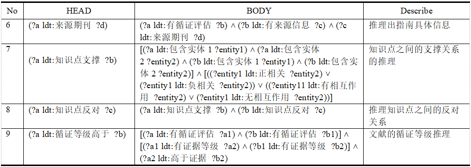 表3 可循证知识推理规则
