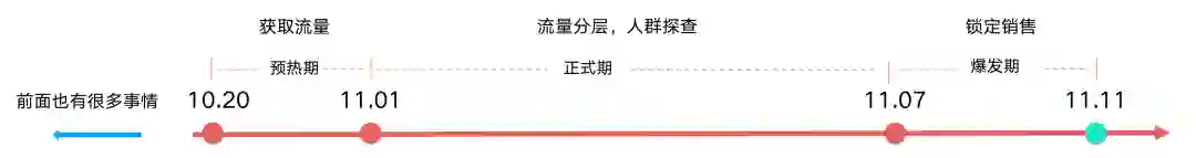 预热期,从10.20开始,到11.01结束,这个期间,商品开始预售活动,消费者付定金,提前锁定销售。