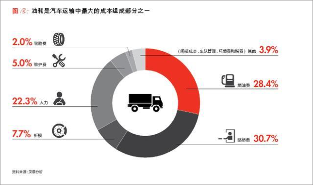 对于货车运输企业,过路费可以占到总成本的 1/3。按照贝恩 2017 年的报告,过路费是汽车运输的最大成本,甚至高于不断上涨的燃油费。