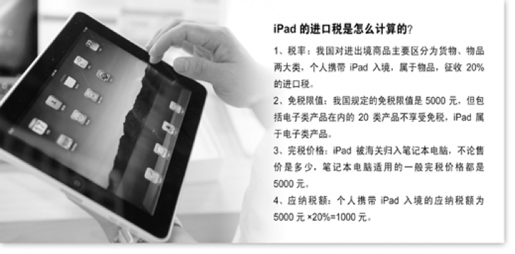 2010 年,海关规定游客个人携带 iPad 入境要征收 1000 元关税,舆论哗然