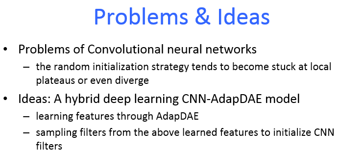 卷积神经网络是一种典型的深度学习架构,并广泛应用于图像识别和分类等领域。然而,随机初始化参数容易使算法陷入局部最优甚至发散,导致实际应用中效果并不理想。为了解决该问题,本文提出一种混合深度学习模型,卷积自适应降噪自动编码器(CNN-AdapDAE)。该模型将自适应降噪自动编码器(Adaptive Denoising Autoencoder, AdapDAE)学习的特征用于初始化卷积神经网络的滤波器,再对经过改进的卷积神经网络进行分类任务训练。在该模型中,AdapDAE算法作为卷积神经网络的预训练过程被提出,其基于退火原理自适应地获得噪声级别,噪声级别开始较高,随着训练的进行而逐渐降低。因此,采用AdapDAE算法学习到的特征包括不同粒度级别的特征的组合。在STL-10,CIFAR-10和MNIST数据集上的广泛实验结果表明,提出的算法优于采用随机初始化策略的卷积神经网络CNN(Random filters)、采用自动编码器预训练的卷积神经网络(CNN-AE)和其它一些特征学习方法。