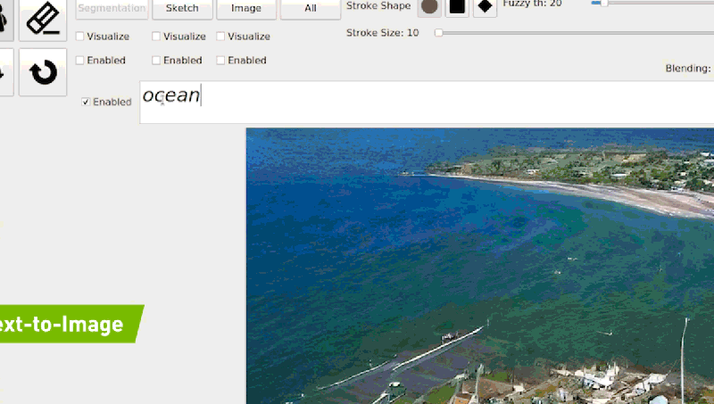 在 2019 年举办的 GTC 大会上,英伟达展示了一款新的交互应用 GauGAN:利用生成对抗网络(GAN)将分割图转换为栩栩如生的图像。
