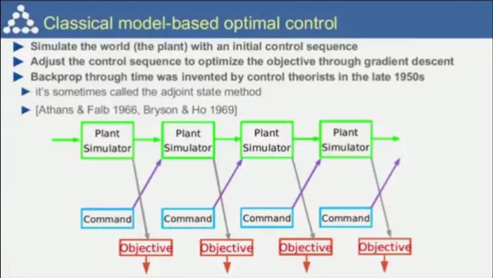 对应的迭代式的学习方式和优化如上图所示。这种非监督学习方式也是人类诸如学开车等技能获得的重要方式,因为人们会推演行为带来的后果,并不断调整达到最优。