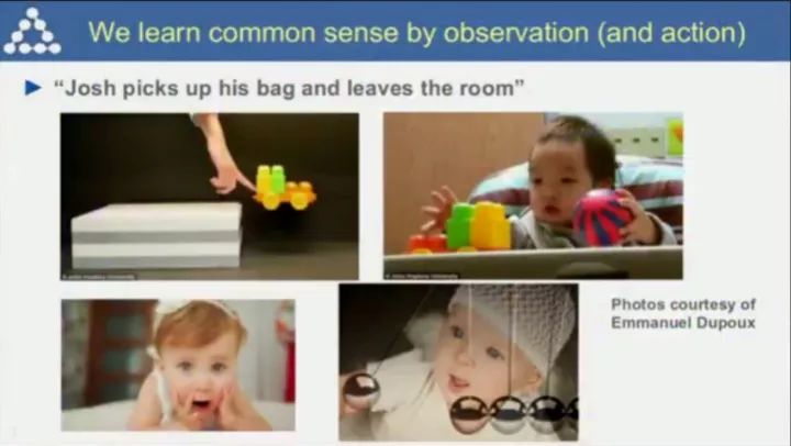 人类具有通过观察形成常识的能力,例如“Josh拿起包离开了房间”,我们人类很容易理解相应的行为,但很难教机器去理解这一系列动作;