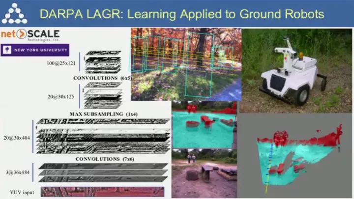 而在Lecun将机器学习应用于机器人的研究在2003年,当时DARPA找到Lecun,通过模仿学习进行避障的研究。2005年,Lecun将论文投给了第一届RSS(机器人领域的顶级学术会议之一),但很不幸的被拒了,随后Lecun将论文转投当年的NIPS,论文被收录发表。而这一研究的阶段性成果也打动了DARPA,并催生了之后的DARPA LAGR项目(这么说来,Lecun在机器人方面的研究天赋是不是被RSS耽误了呢)。