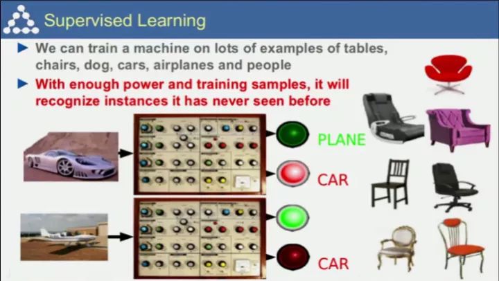 我们可以通过强化学习训练机器识别如桌子、凳子、够、汽车、飞机等实例,只要我们有足够的计算能力和训练样本,机器业能识别出之前未见过的东西。