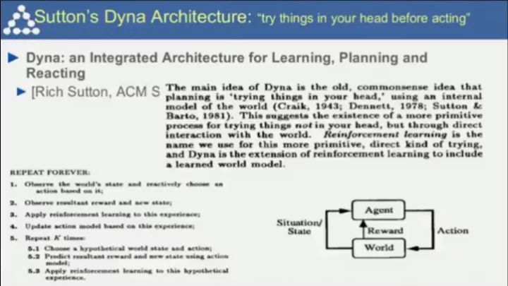 经典的强化学习框架Dyna:“现在大脑中推演然后再行动”;