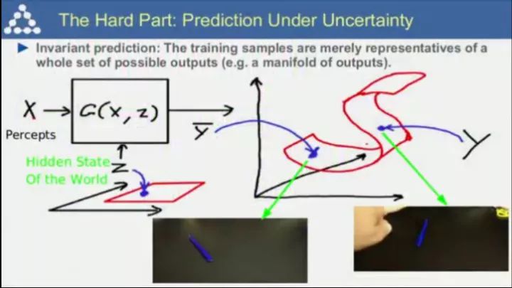 然后Lecun提到了在非确定条件下的预测方式(非监督学习)。