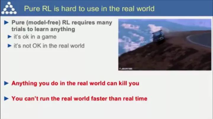 在Lecun看来,真正的强化学习是很难在现实世界中应用的,一不小心出错就会酿成大祸,还是玩玩游戏就好了。