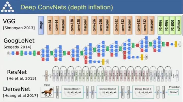 从2013年到2017年,从VGG到DenseNet(这也是Facebook用于图像识别的网络结构),深度卷积神经网络变得越来越深,识别效果也变得越来越好。