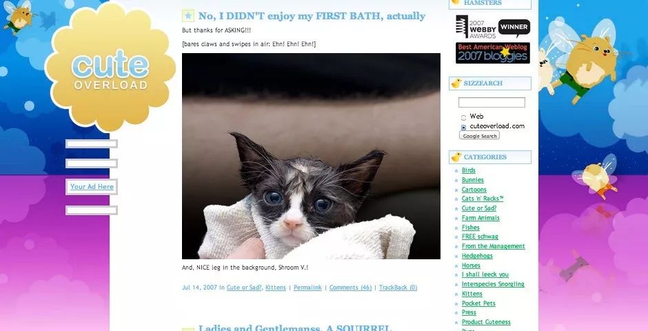 为了保证质量,我们付出了大量的辛苦工作,因为那时博客软件更加零散,而那个时代的提要却是一团糟。你还记得 Cute Overload 吗?我不会忘记,因为这个博客网站周围遍布怪异的框架。而这种七拼八凑的网站很常见。