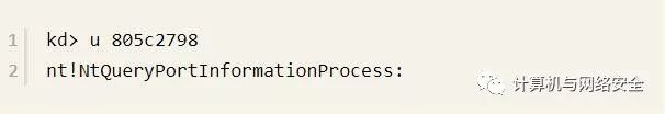 再用u命令来查看805c2798处的反汇编代码,输入命令u 805c2798,输出如下: